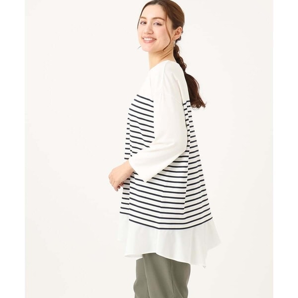 重ね着風の裾のフレアがかわいいパネルボーダーチュニック。