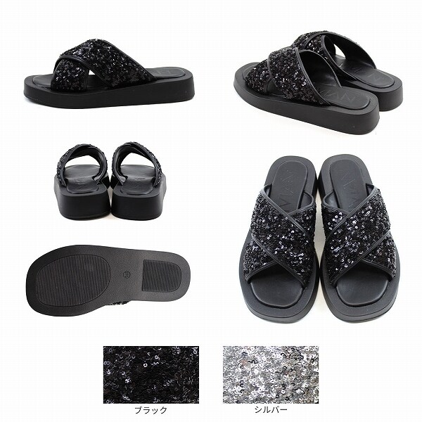 【25春夏新作】厚底スパンコールクロスバンドサンダル