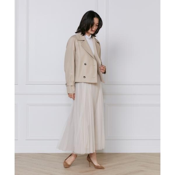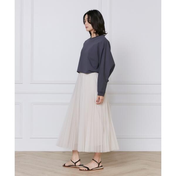 軽やかなチュールのプリーツスカート。細幅のプリーツが上品でシャープな印象です。内側にもチュールを重ねることで程よくボリュームを出しています。ウエストはゴム仕様で穿き心地良く、きれいめからカジュアルまで幅広いスタイリングを楽しめるアイテムです。裏地との境目に透け感があることで軽さが出て、抜け感のある着こなしが完成します。・裏地あり・ウエストゴム仕様■サンプル撮影商品■こちらの商品はサンプルでの撮影となっております。実際の商品とは、サイズや色味、素材、デザイン等の仕様が若干変更になる場合がございます。