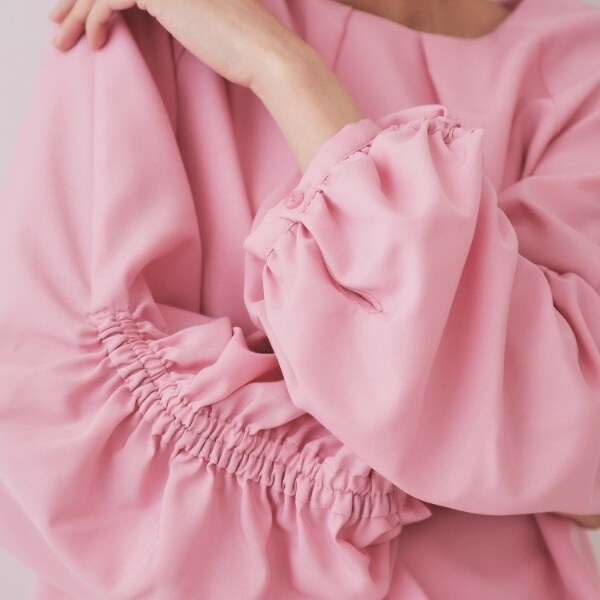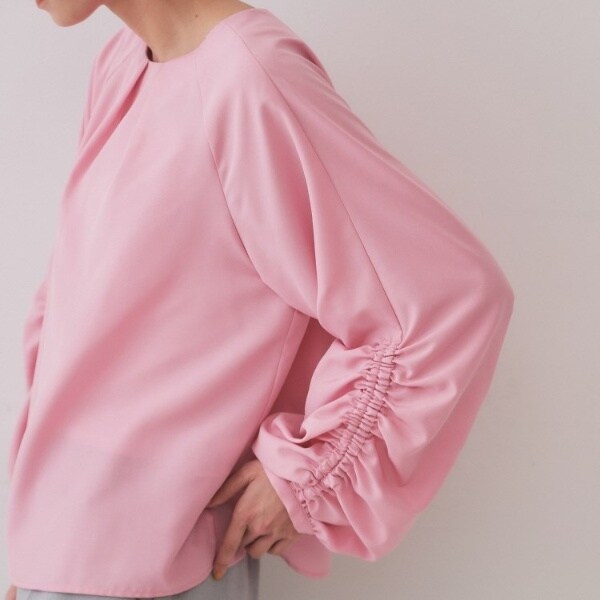 お袖のシャーリングデザインがポイントのブラウス