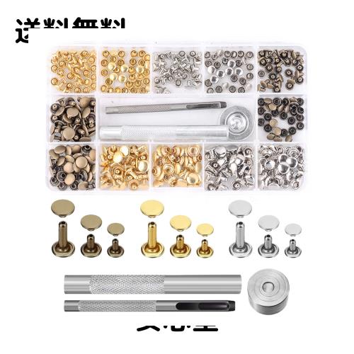 ◆商品名:YFFSFDC カシメセット レザークラフト 3サイズ 3種色リベット リベットパーツ スタッズ 底鋲 打ち具キット 打ち台 パーツ DIY 手作り ベ