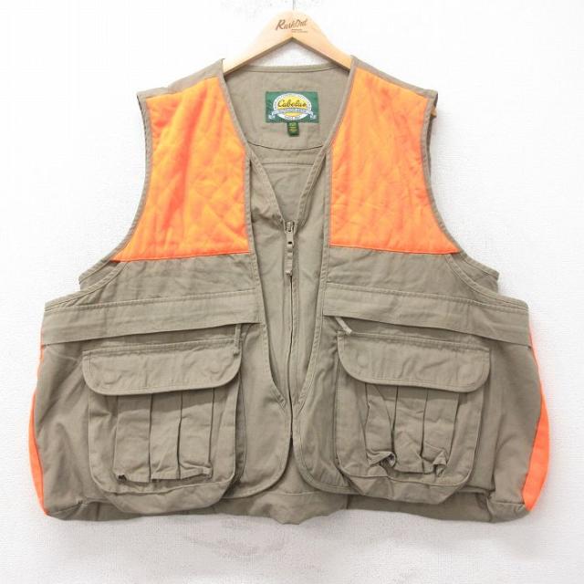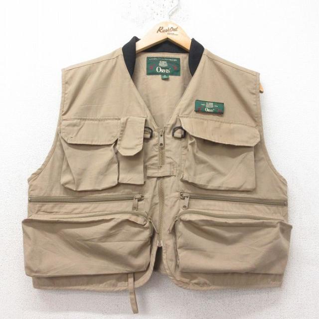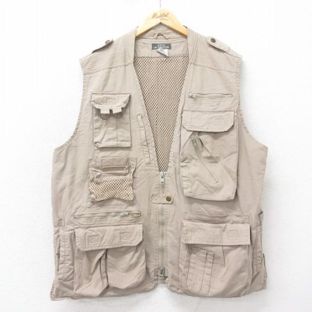 古着 フィッシング ベスト メンズ 90年代 90s 濃ベージュ他 カーキ XLサイズ 中古 アウター 中古 古着