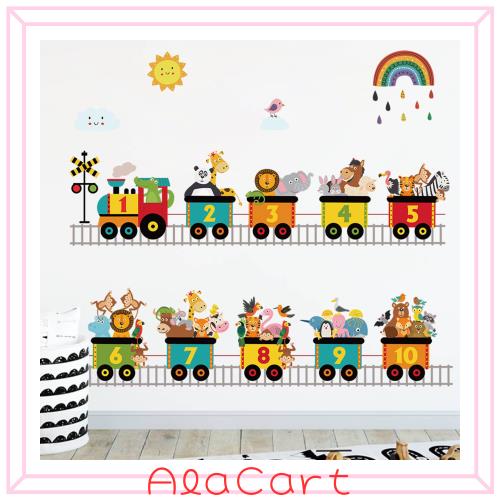 Condessacity ウォールステッカー 子供 小さな電車 壁紙シール はがせる 動物 番号 漫画の電車 ウォールすてっかー こども部屋 幼稚園 保