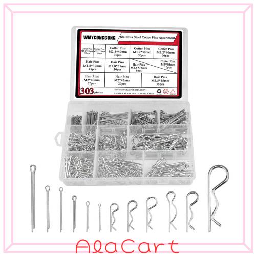 ◆商品名:WMYCONGCONG 12サイズ 303個セット ステンレス鋼コッターピン割りピンキット 割りピン品揃えキット + 亜鉛メッキ鋼Rピン スナップピンフ