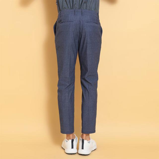 風通りを良くする風穴がある素材「かざあなメッシュ」を使用したパンツです。無地見えするシャンブレー柄をプリントしているのでコーディネートがしやすく、また霜降りのカラーが視覚的に柔らかい印象を与えます。風の中では体感温度が低く感じられる爽やかなアイテムです。