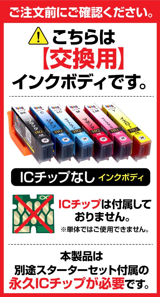 | 繰り返し使える永久ICチップ専用の交換用互換インクカートリッジです。 別途永久ICチップ付きスターターセットが必要になります。 本製品だけでは、ご使用になれませんので予めご了承ください。 | |