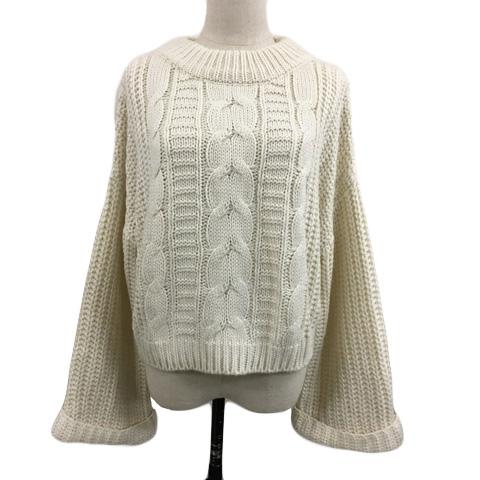 【中古】ダブルクローゼット セーター ニット プルオーバー モックネック ケーブル編み 長袖 F 白 ベージュ