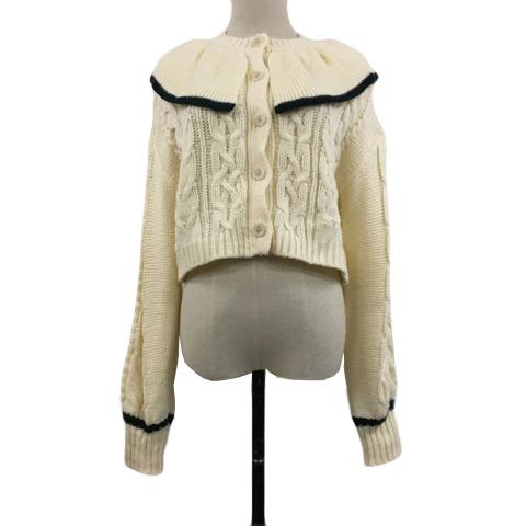 【中古】ダブルクローゼット カーディガン ニット クルーネック フリル ケーブル編み 長袖 F 白 ベージュ ホワイト