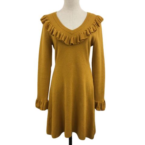 【中古】スライ ワンピース ニット Aライン フレア ミニ フリル 無地 長袖 1 黄 マスタード イエロー レディース