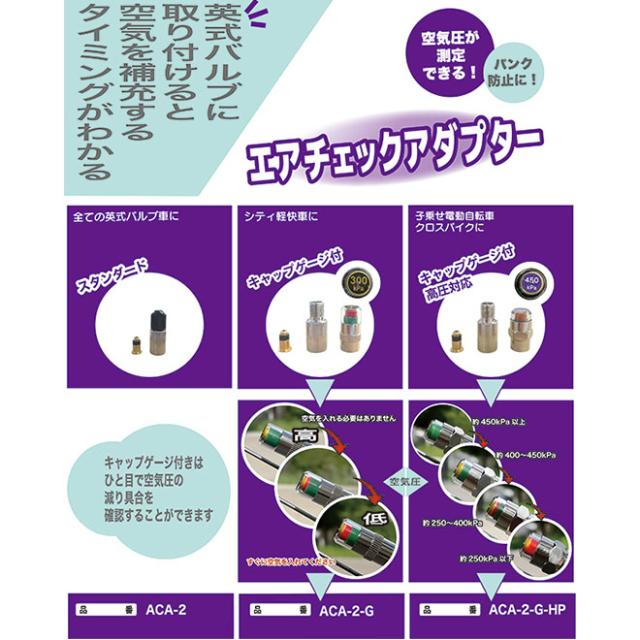 自転車 バルブアダプター Panaracer パナレーサー エアチェックアダプター キャップゲージ付 高圧対応 英式 米式 バルブ アダプター 変換 ACA-2-G-HP 空気入れ エアバルブ 電動アシスト車 送料無料