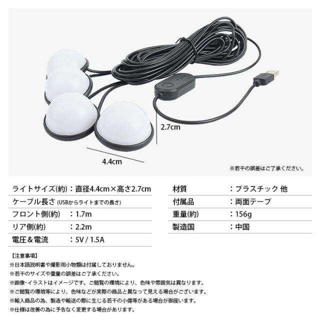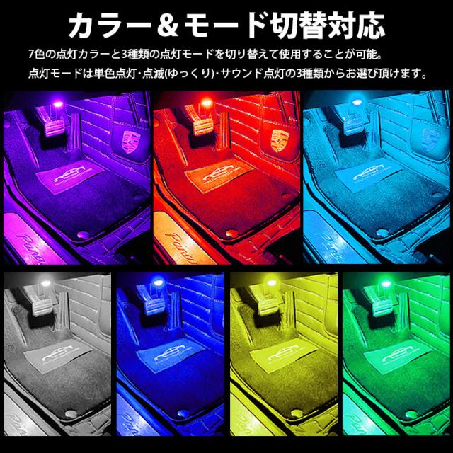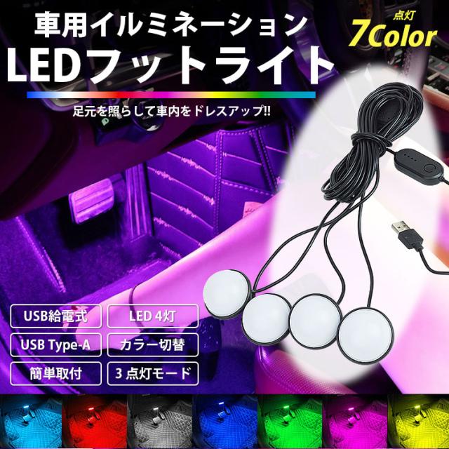 フットライト 車 LED イルミネーションライト 車内 足元ライト USB給電式 カラー切り替え 両面テープ 簡単取付 点灯モード切り替え 常時点灯 点滅 室内灯 間接照明 車内装飾 PR-QF1CC