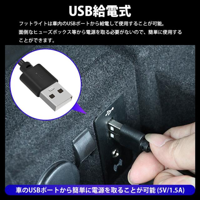 フットライトは車内のUSBポートから給電して使用することが可能。