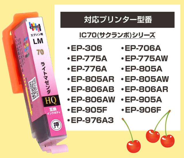 | IC70 IC70L IC6CL70L IC6CL70 インク エプソン サクランボ さくらんぼ エプソンインクサクランボ ep-306 ep-706aインク ep-775a ep-775aw ep-776a ep-805a ep-805ar ep-805aw ep-806ab ep-806ar ep-806aw ep-905a ep-905f ep-906f ep-976a3 互換インク epson ICbk70 ICbk70L ep-706a ep 306 706a 775a 775aw 776a 805a 805ar 805aw 806ar 806aw 905a 905f 906f 976a3 黒 プリンターインク 年賀状 暑中見舞い 残暑見舞い 喪中 忌中 イエロー ライトマゼンタ ライトシアン マゼンタ シアン ブラック 互換インクカートリッジ | |