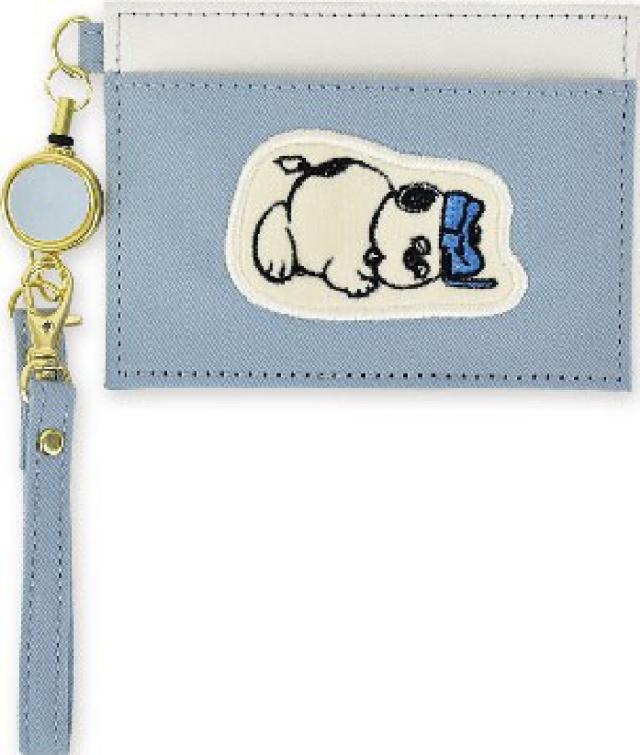 【スヌーピー】【SNOOPY】リール付きシングルパスケース【ブルー】【青】【オラフ】【アップリケ】【ピーナッツ】【ウッドストック】【ポーチ】【定期入れ】【カード入れ】【収納】