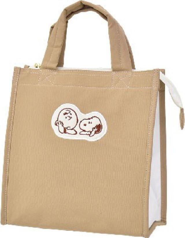 マリSPIK-337 【送料無料】【スヌーピー】【SNOOPY】ランチトートバッグ【ベージュ】【茶】【スヌーピーとチャーリー・ブラウン】【アップリケ】【ピーナッツ】【ウッドストック】【すぬーぴー】【カバン】【鞄】【弁当入れ】【収納】【アウトドア】【雑貨