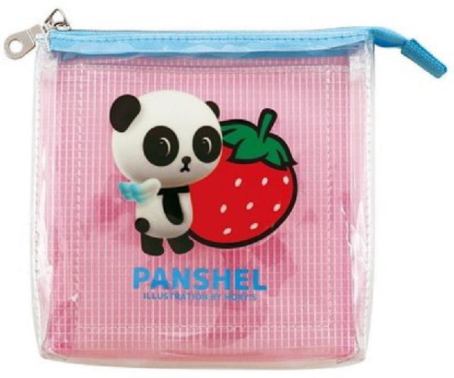 【パンシェル】クリア3ポケットポーチ【ストロベリー】【パンダ】【動物】【アニマル】【ケース】【小物入れ】【収納】【メイク】【化粧】【コスメ】【雑貨】【グッズ】【かわいい】