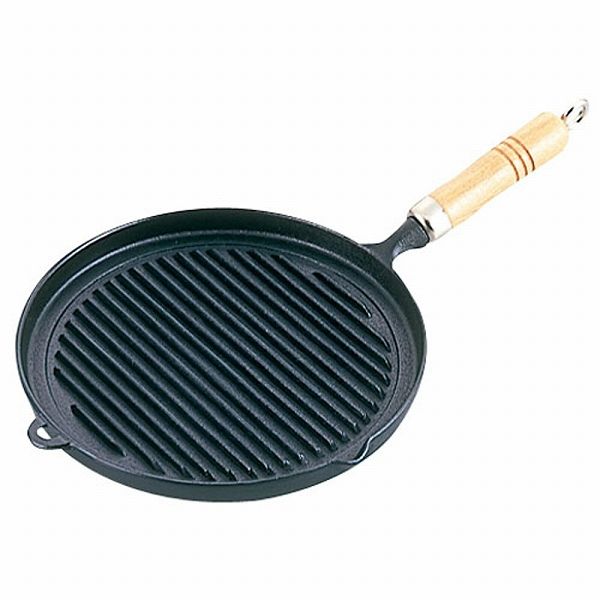 岩鋳(Iwachu) 木柄グリルパン 南部鉄 23-029(AGL66) グリルパン グリルプレート フライパン 丸型 鉄製 鉄フライパン 鉄グリルパン 片手 IH IH対応