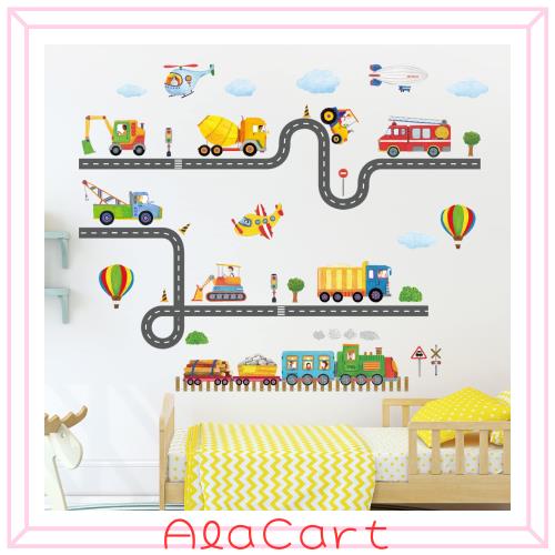 DECOWALL SG-2107 道路工事運送 ウォール ステッカー デコ 幼稚園 保育園 子供部屋