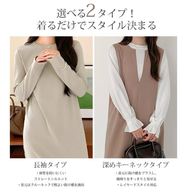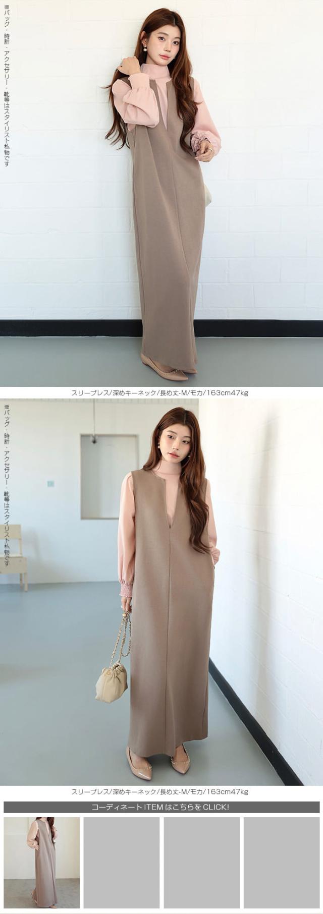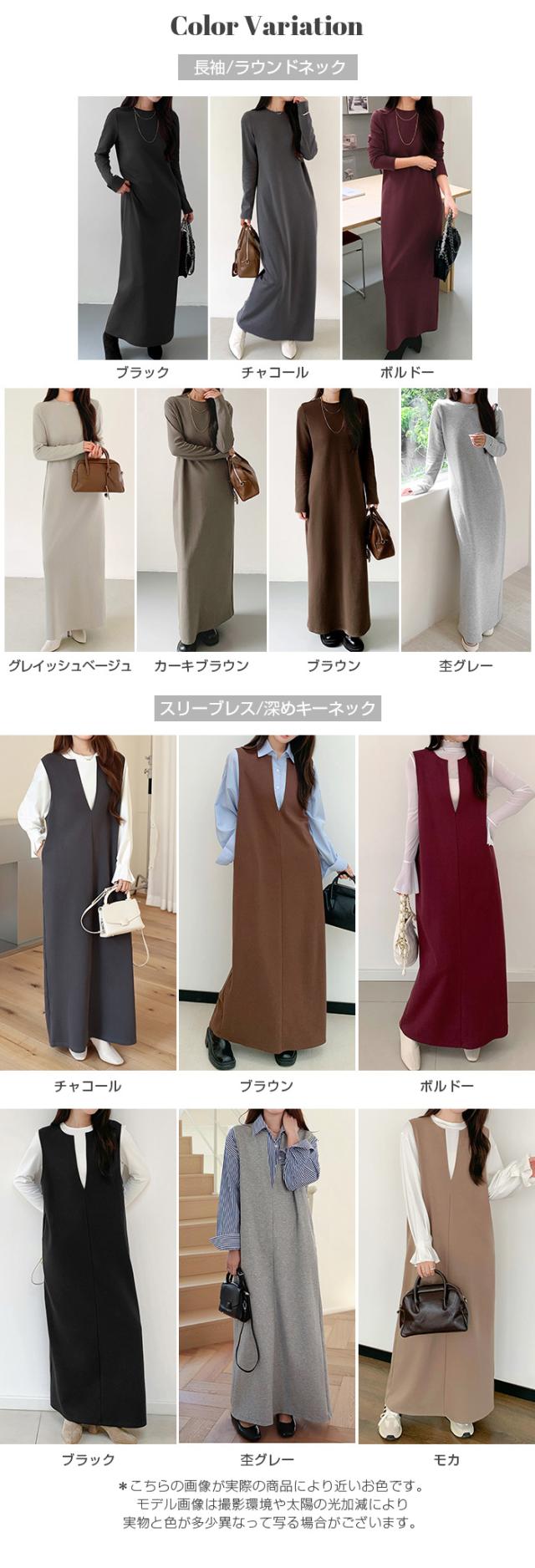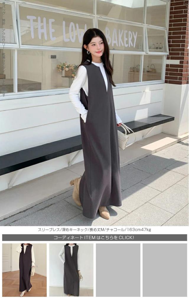 【 選べる3タイプマキシワンピース 】 シンプルだからこそ、こだわりのシルエットで作り上げた、 スムースコットン生地のマキシワンピース。 身長やスタイルに合わせて選べる3丈展開(短め丈・普通丈・ロング丈)で、 低身長さんも高身長さんも美しく着こなせます。 《商品ポイント》 [長袖/ラウンドネック] ・上品見えするミニマルデザイン ・ラウンドネックで顔まわりをすっきり演出 [スリーブレス/深めキーネック] ・インナー次第でロングシーズン活躍 ・深めキーネックで抜け感のあるデザイン 《デザイン・シルエット》 [長袖/ラウンドネック] ・ラウンドネックが程よい抜け感を演出 ・袖口すっきりの長袖デザインで重ね着にも◎ [スリーブレス/深めキーネック] ・深めのVカットでレイヤード映えするネックライン 《コーディネート提案》 ・ロングコートを羽織ってモードに ・ブーツ合わせで冬のきれいめカジュアル ・スニーカーと合わせてデイリーに着回し ・アクセサリーで華やかにドレスアップも ・ジャケットを羽織ればきちんと感アップ ・(スリーブレス/深めキーネック)シャツやタートルを合わせて通勤コーデに ・(スリーブレス/深めキーネック)ロンTやスウェットと合わせてカジュアルにも◎ 《サイズ・カラーバリエーション》 カラー: 長袖/ラウンドネック…杢グレー/グレイッシュベージュ/チャコール/ブラウン/ブラック/カーキブラウン/ ボルドー スリーブレス/深めキーネック…杢グレー/チャコール/ブラウン/ブラック/モカ/ボルドー 長袖/レイヤードネック…杢グレー/ チャコール/ブラウン/ブラック/ カーキブラウン/モカ サイズ:短め丈-M/短め丈-L/普通丈-M/ 普通丈-L/ 長め丈-M/長め丈-L 《素材・機能性》 ・素材:コットン80%、ポリエステル20% ・透け感:ほとんど透けない ・伸縮性:若干あり ・厚み:普通 |