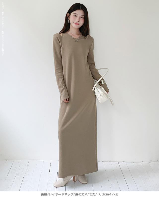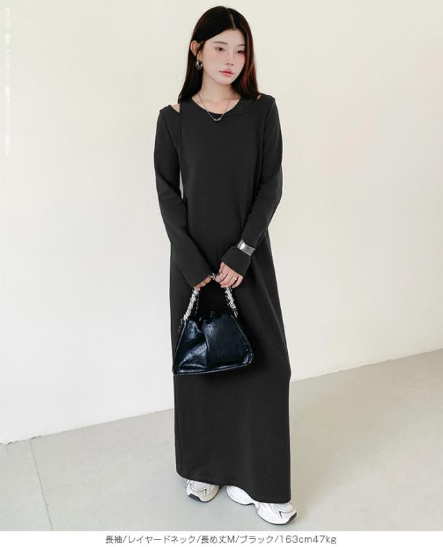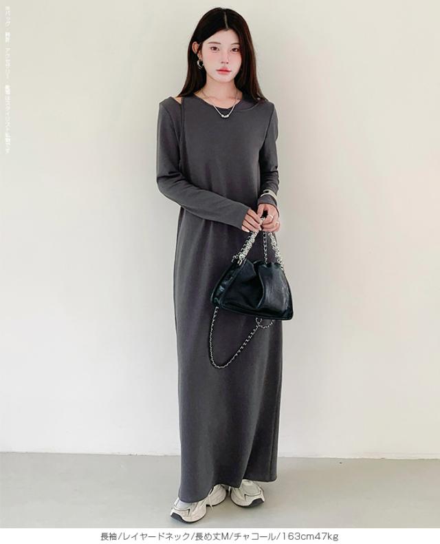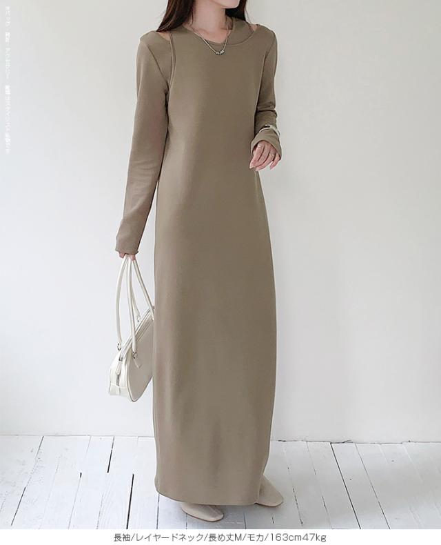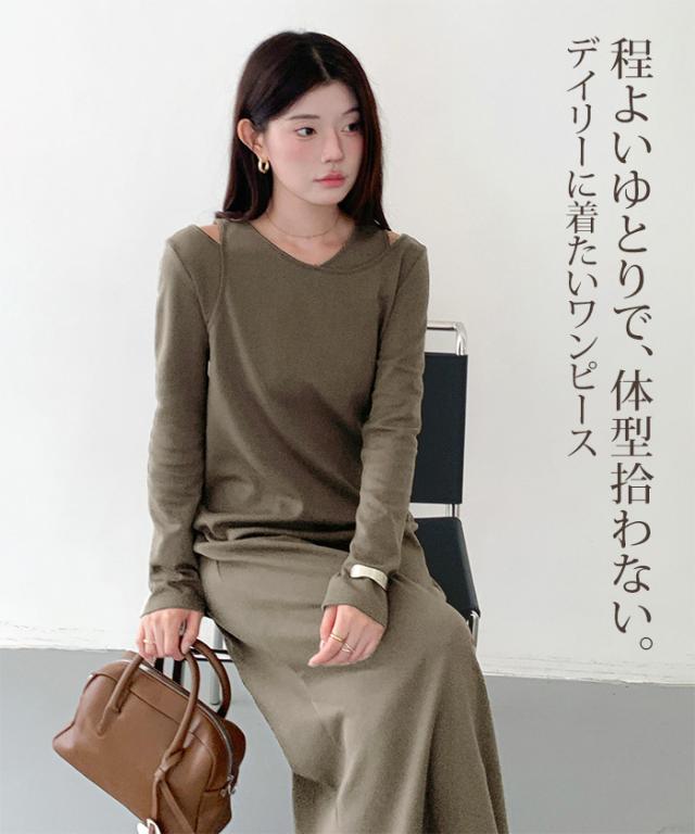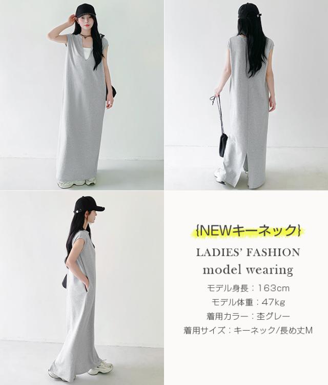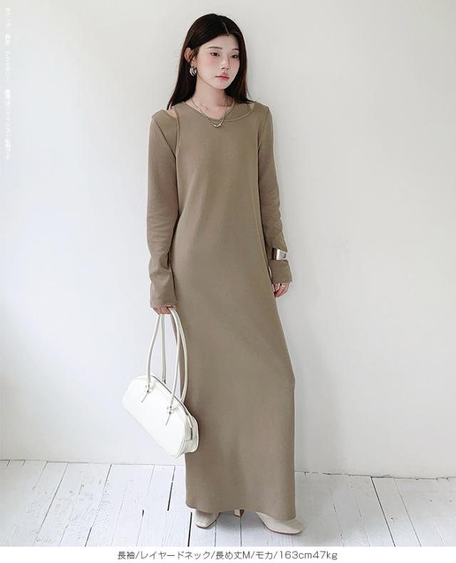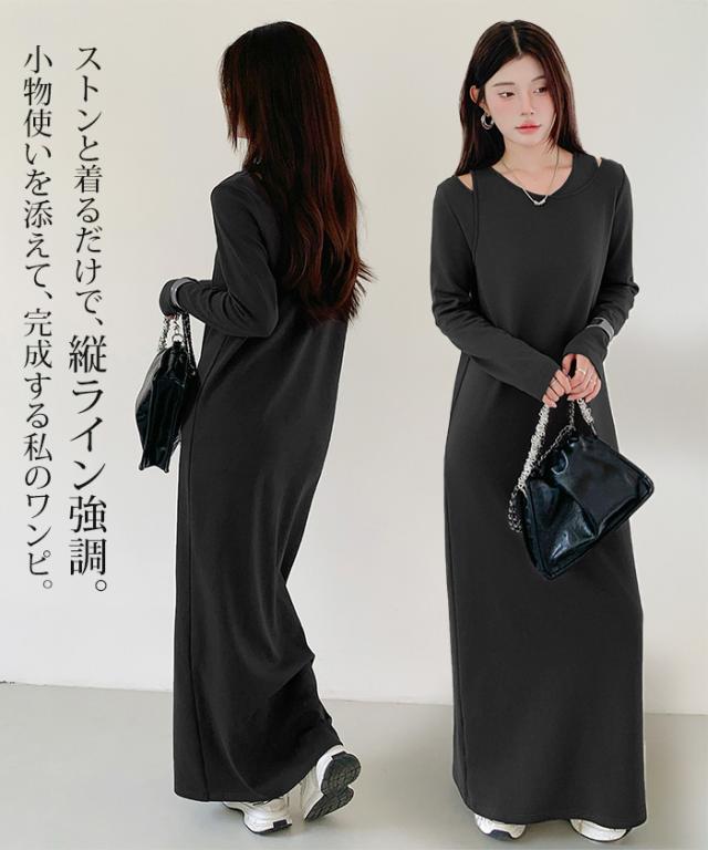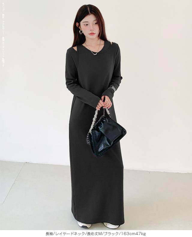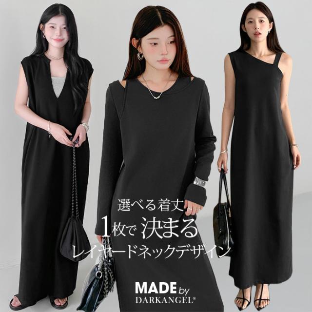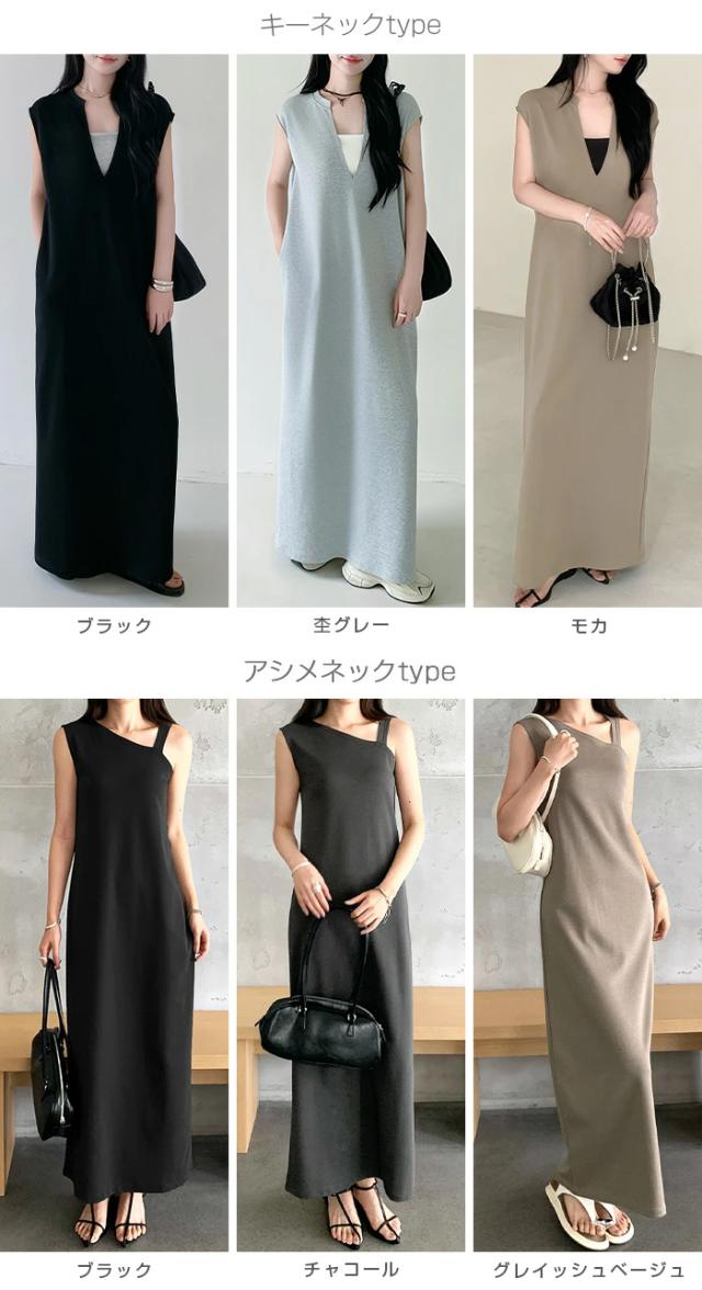 1,500円OFFクーポン!選べる3タイプ マキシワンピース レディース ロングワンピース 長袖 ノースリーブ 体型カバー 高見え 低身長 高身長 春 夏 大人カジュアル シンプル 楽ちん 【選べるマキシワンピ キーネック|レイヤードネック|アシメネック】春新作 ●即納●