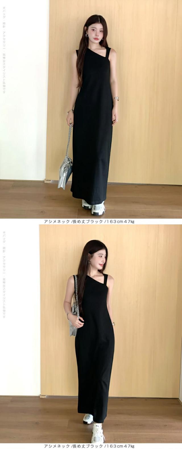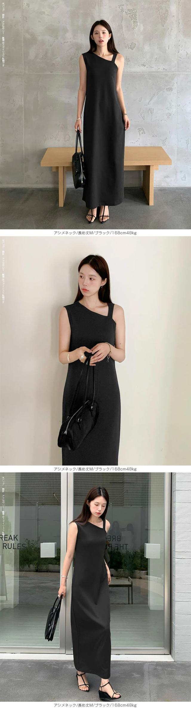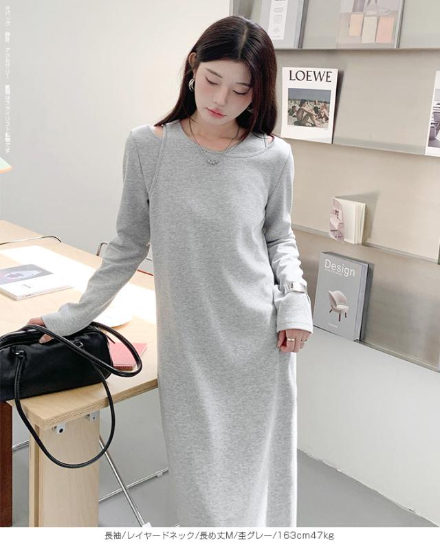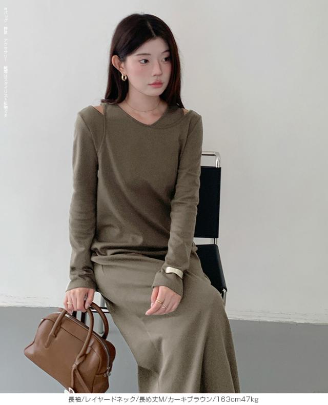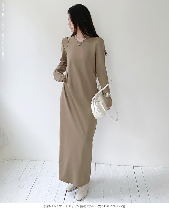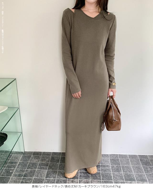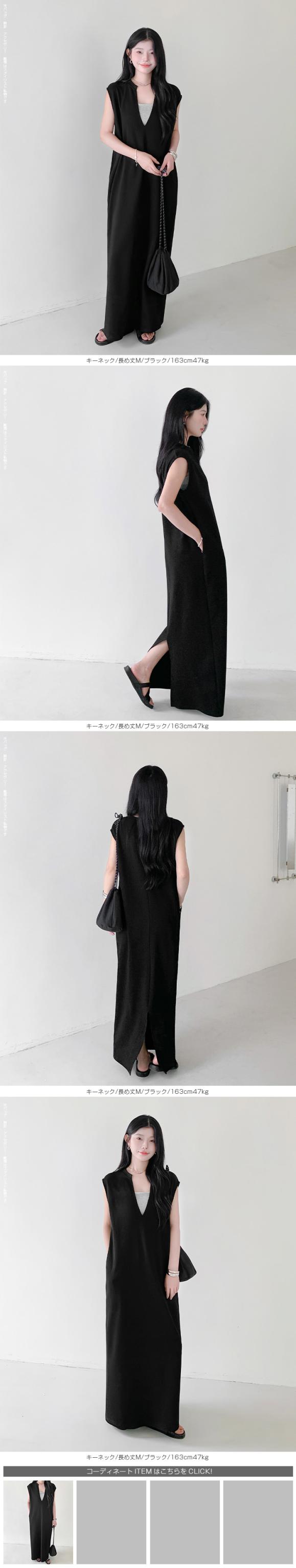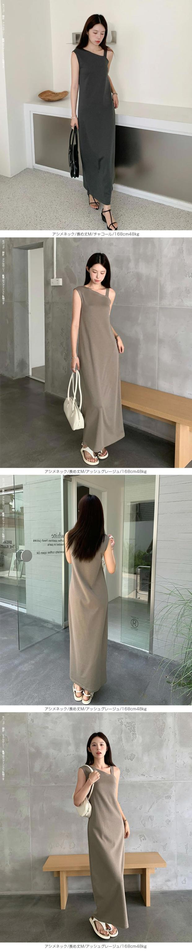 1,500円OFFクーポン!選べる3タイプ マキシワンピース レディース ロングワンピース 長袖 ノースリーブ 体型カバー 高見え 低身長 高身長 春 夏 大人カジュアル シンプル 楽ちん 【選べるマキシワンピ キーネック|レイヤードネック|アシメネック】春新作 ●即納●