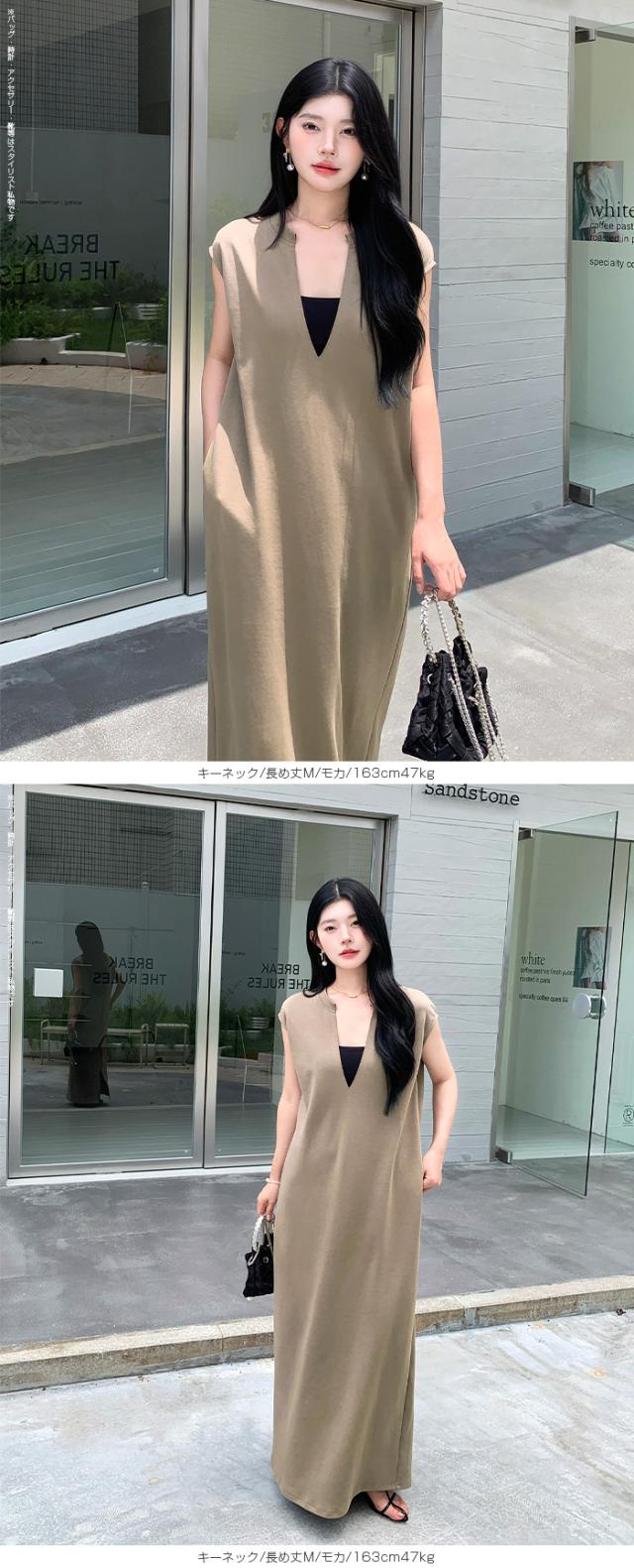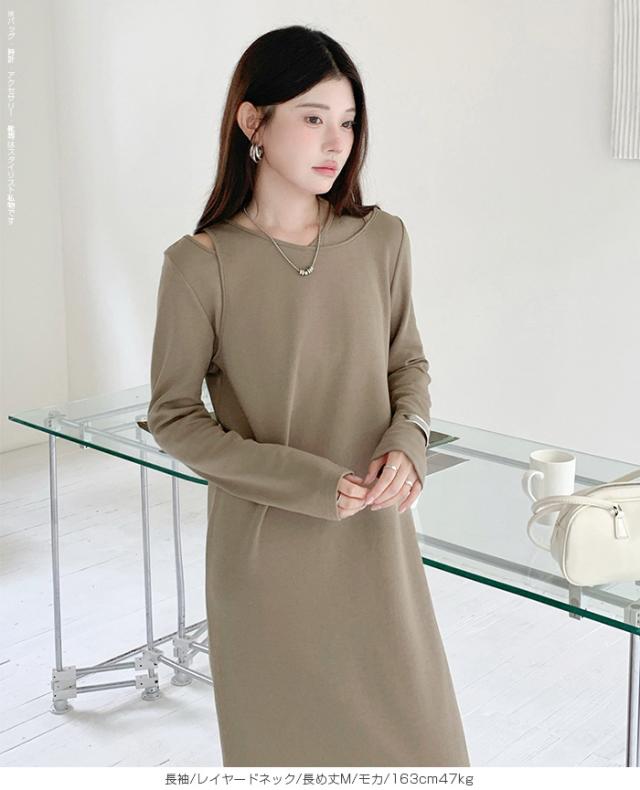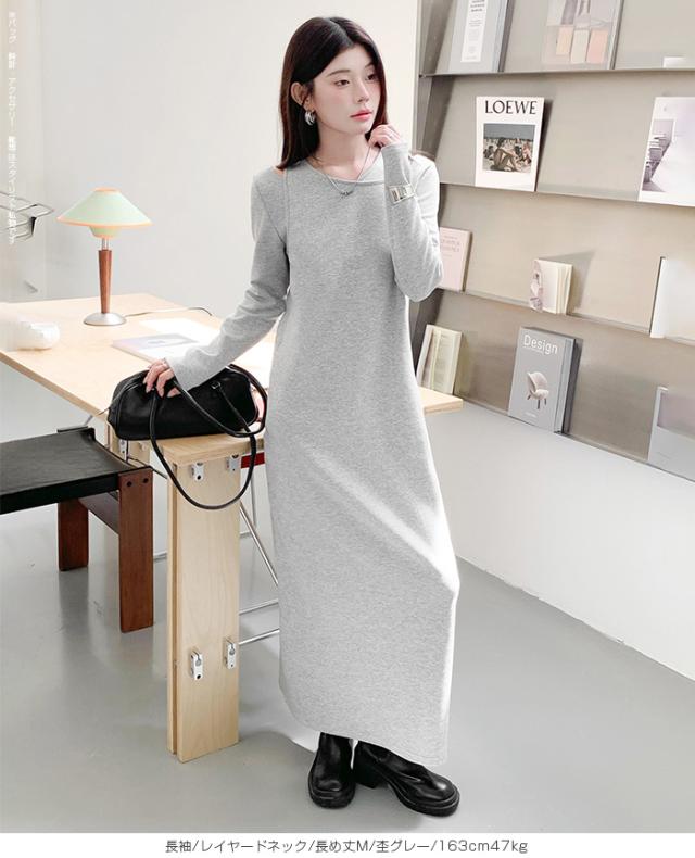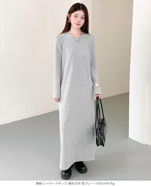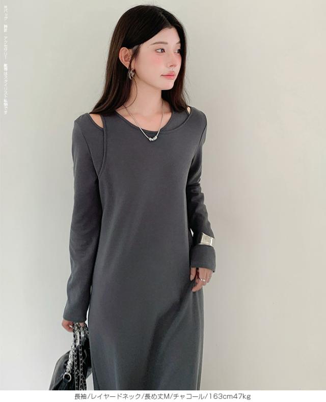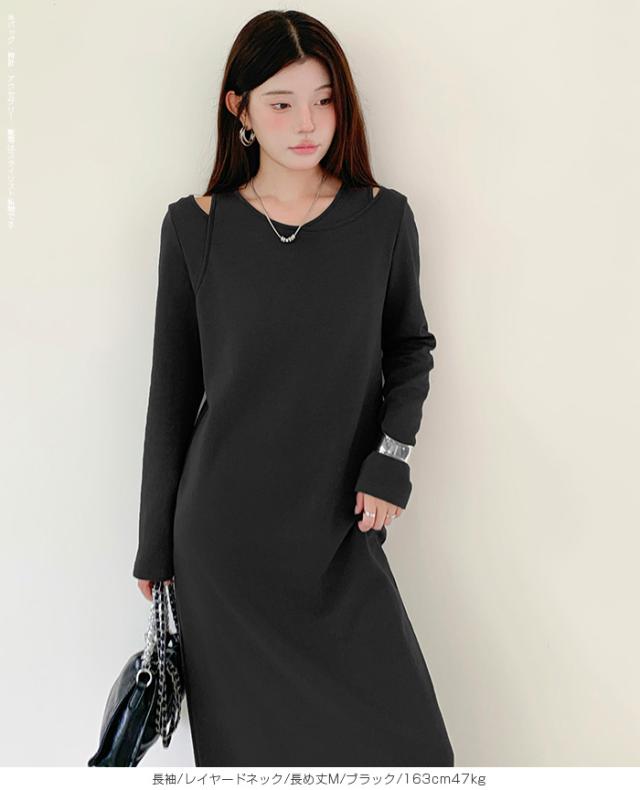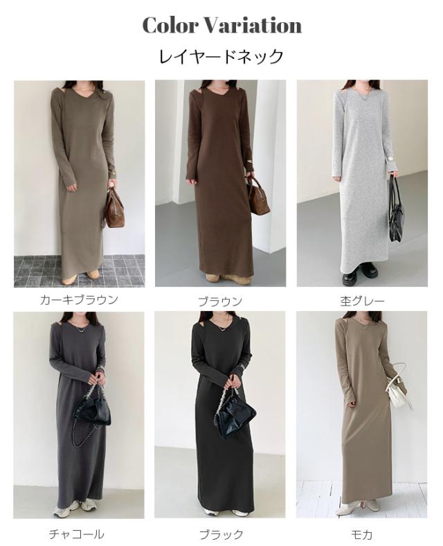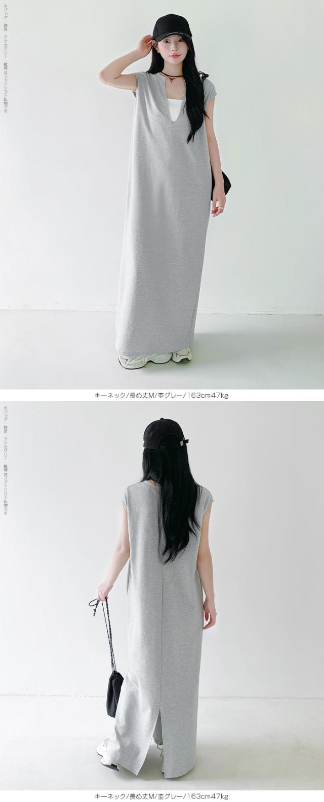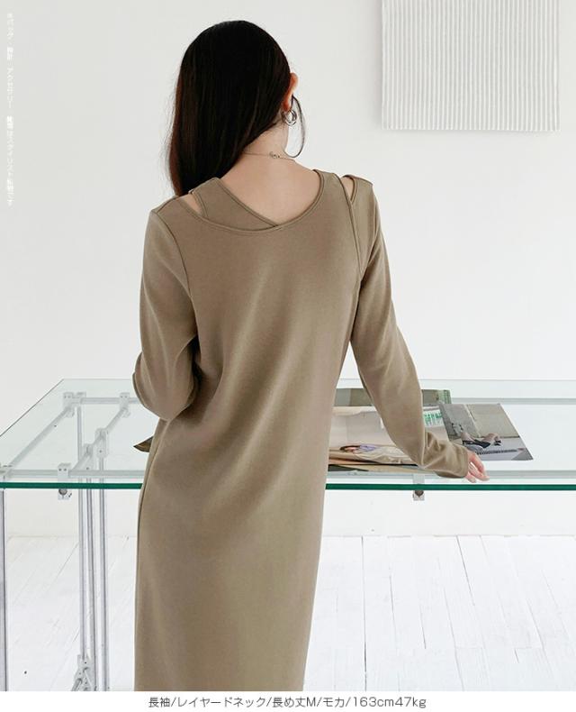 1,500円OFFクーポン!選べる3タイプ マキシワンピース レディース ロングワンピース 長袖 ノースリーブ 体型カバー 高見え 低身長 高身長 春 夏 大人カジュアル シンプル 楽ちん 【選べるマキシワンピ キーネック|レイヤードネック|アシメネック】春新作 ●即納●