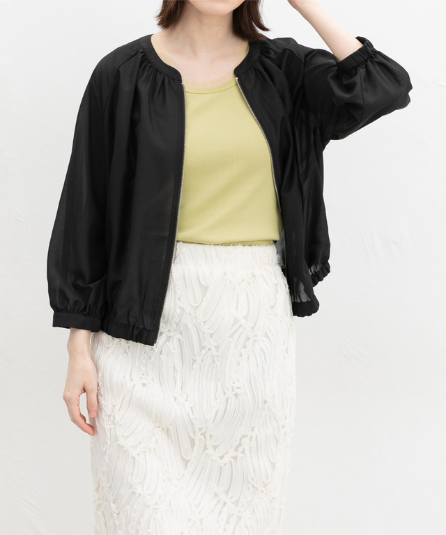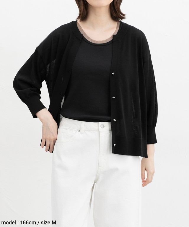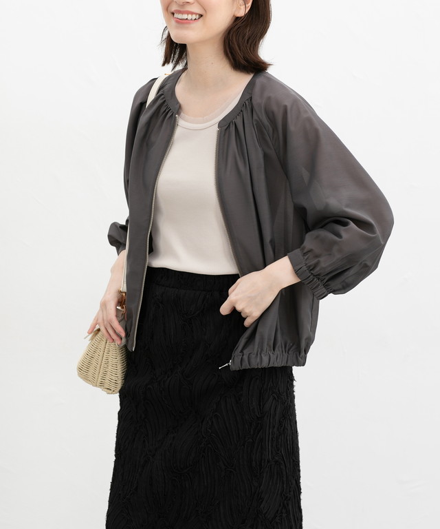 衿ぐりと袖ぐりのチュール使いが、さりげない抜け感と今っぽさを演出するお洒落なデザイン。