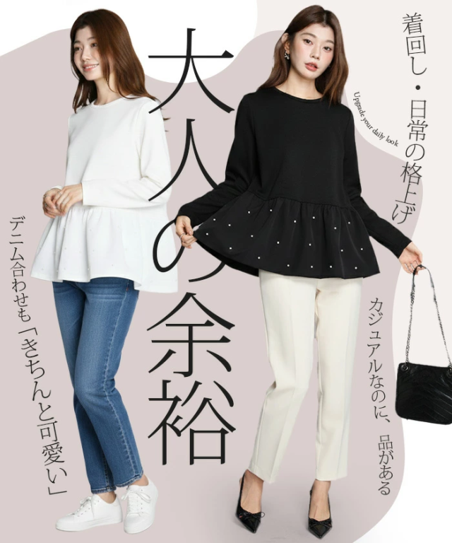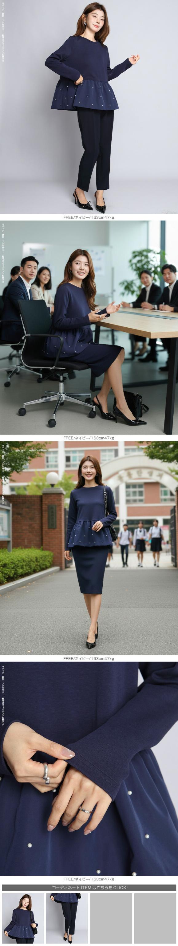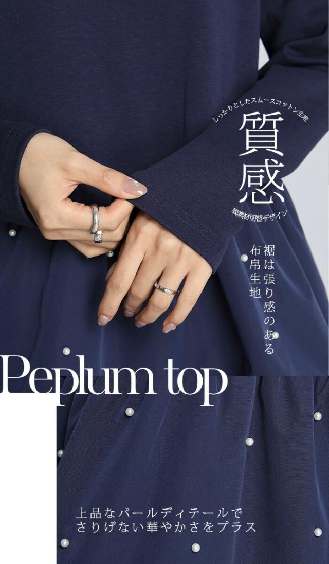 【大人の可愛さを纏う。パール付きペプラムトップス】