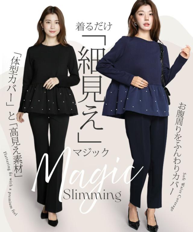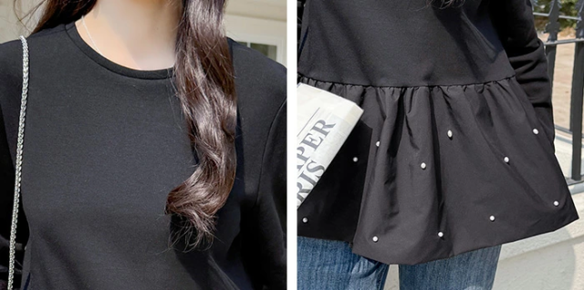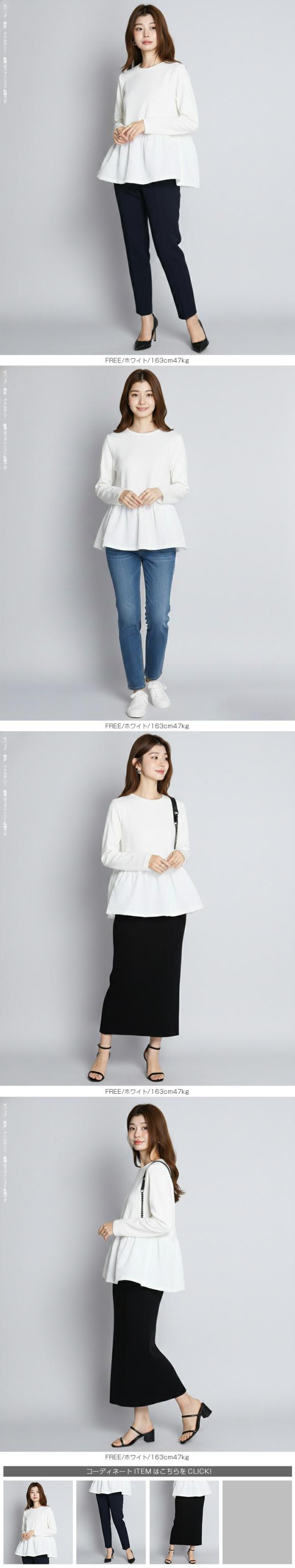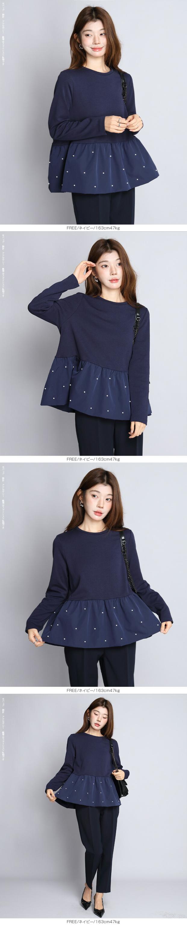 1,500円OFFクーポン!パール付き ペプラム トップス 長袖 レディース カジュアル 体型カバー 大人可愛い きれいめ 上品 おしゃれ シンプル ブラック ホワイト 30代 40代 コーデ 送料無料