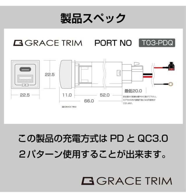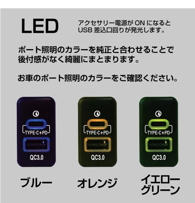 | 商品名 | トヨタ車系 T03タイプ スイッチホール増設用 USBポート PD & QC3.0 全3色 |