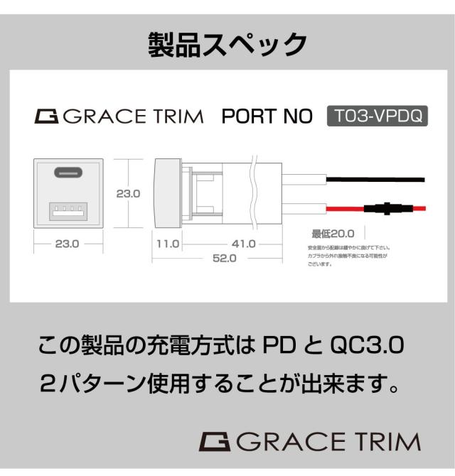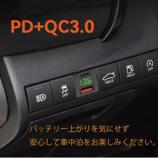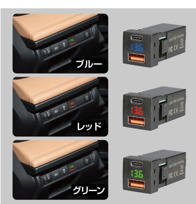 | 商品名 | トヨタ車系 T03タイプ スイッチホール増設用 USBポート Vメーター & PD & QC3.0 全3色 |