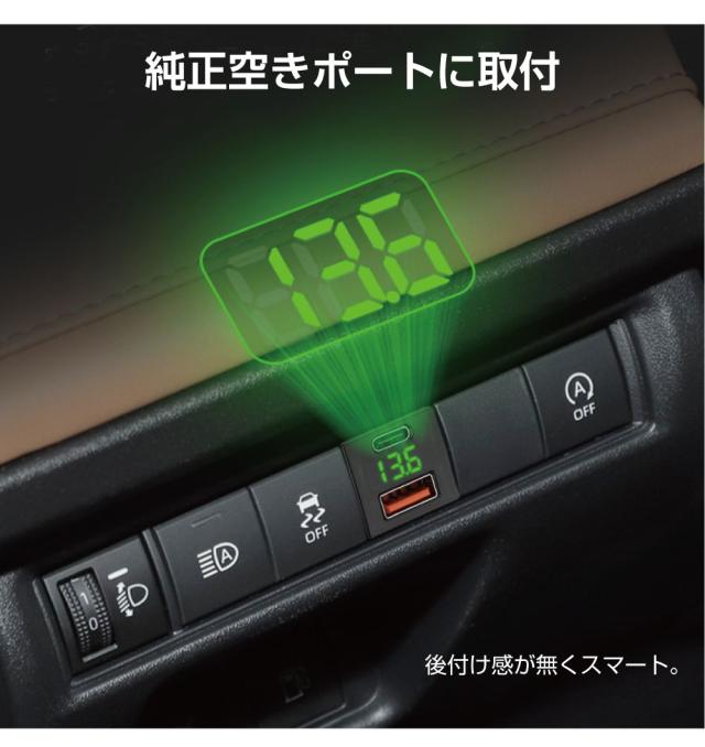 ・トヨタ車 (一部レクサス、ダイハツ、スズキ車)の空きポートに取付できる増設用のUSBポートです。 ・QC(Type-A)とPD(Type-C)2つの高速給電ポート、デジタル表示の電圧メーターを備えてます。 ・スマホの充電やバッテリーの確認。このサイズで3役こなす便利なマルチポートです。 |