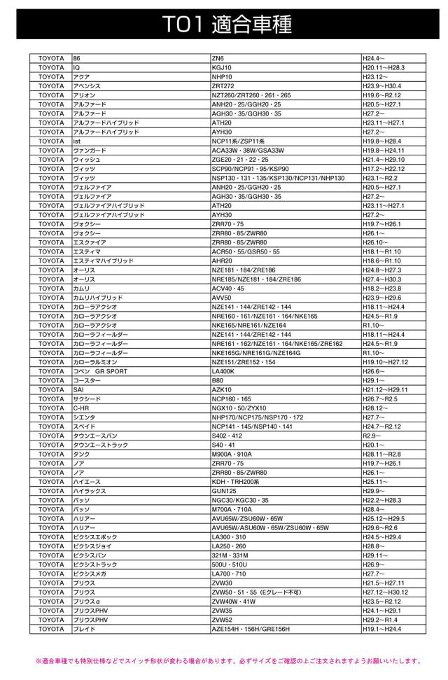 | 商品名 | トヨタ車系 T01タイプ スイッチホール増設用 シーソースイッチ 全3タイプ |
