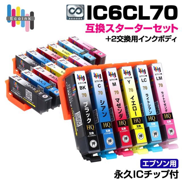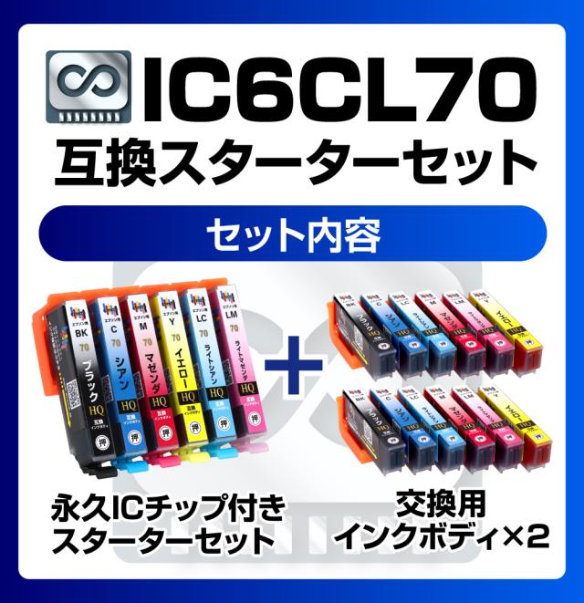 商品名:永久ICチップ付き IC70-6CL 互換スターターセット+2交換用インクボディセット