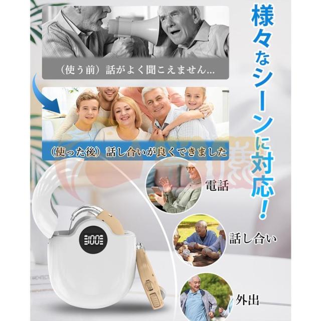 【超軽量で使いやすい】軽量な設計により、片方の集音器はわずかの5.3gで、長時間着用しても不快感を最小限に抑えることができます。デジタルな数字で残る電量を表示され、電量状況をいつでも一目で確認できます。