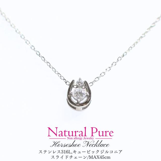 ネックレス レディース アレルギー対応 シンプル シルバー 馬蹄ネックレス ステンレス キュービック 50代 40代 30代 20代
