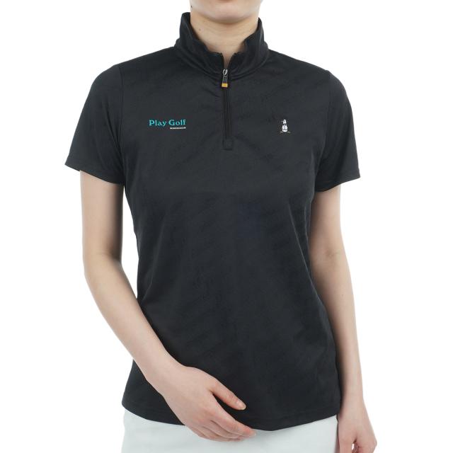 マンシングウェア Munsingwear SEASON COLLECTION ストレッチ ロゴジャカード スタンドジップ半袖シャツ レディス