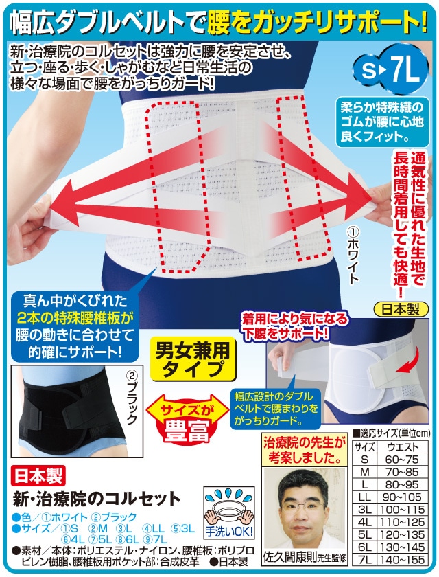 【日本製 新・治療院のコルセット】【送料無料】「立ち上がる」「座る」「歩く」などあらゆる動作を快適にサポート! コルセット 男女兼用 S〜7L 腰 サポーター 日常生活 腰ベルト 腰サポーター 下腹 引き締め ベルト 手洗いOK sd