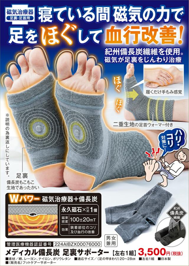 ■様々なご要望にお応えします【メディカル備長炭 足裏サポーター 左右1組 メール便 送料無料 ポイント 2倍 磁気サポーター 足裏サポーター 磁器治療器 備長炭 メディカルサポーター サポーター 100mT 疲労回復 血行促進 管理医療器 冷え 疲れ つる むくみ 足裏健康法 立ち仕事 血行促進 管理医療器レアアース磁石 立ち仕事】