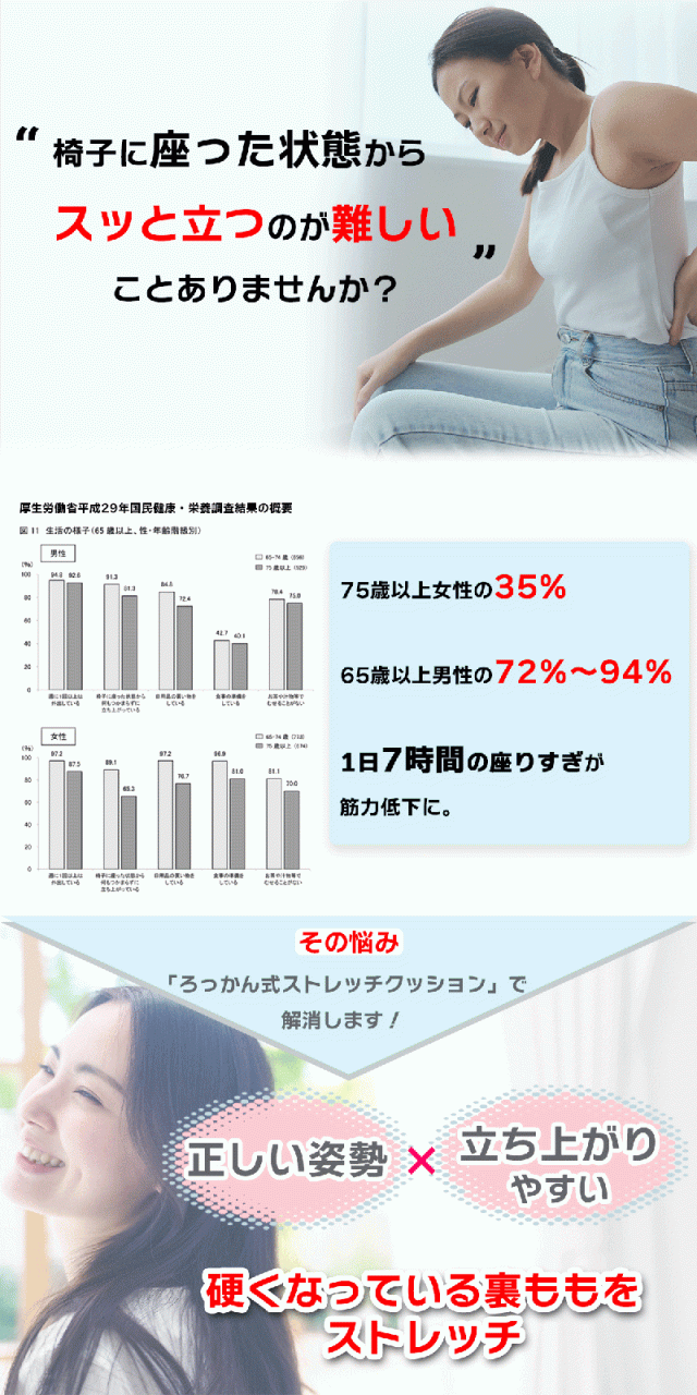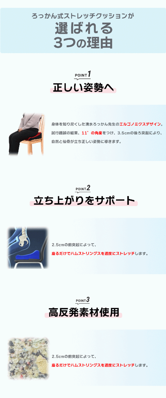 商品詳細: ろっかん式ストレッチクッションが選ばれる3つの理由!