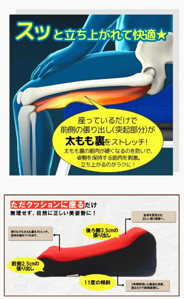 2.5cmの前突起によって、座るだけでハムストリングスを適度にストレッチします。