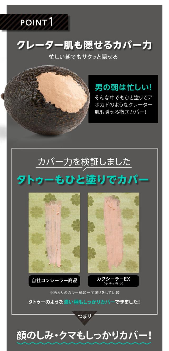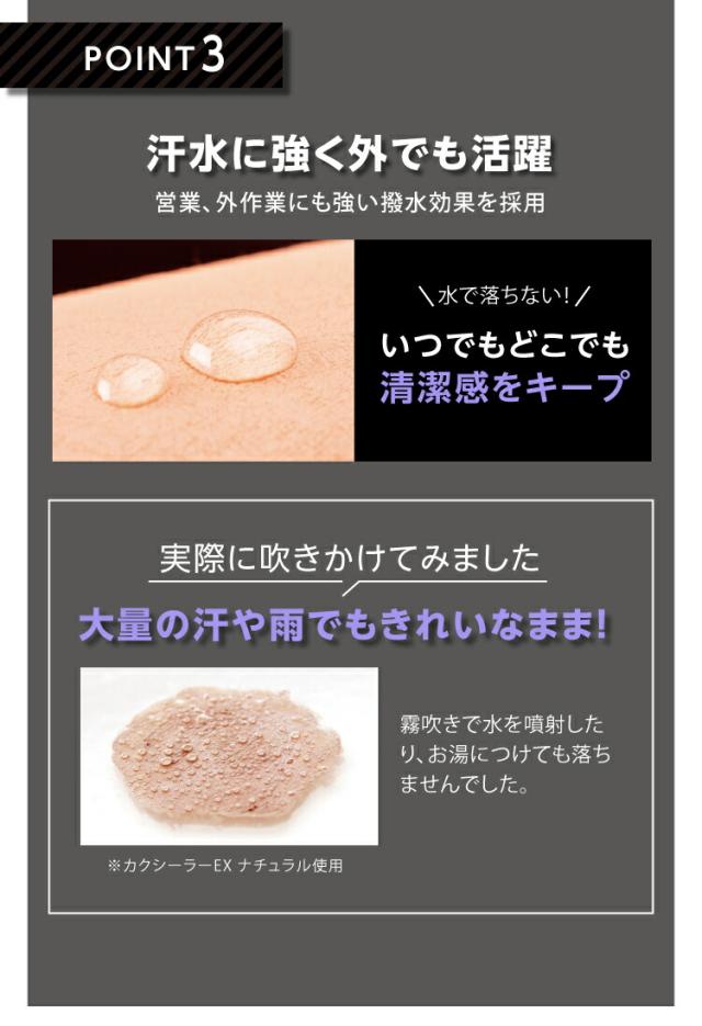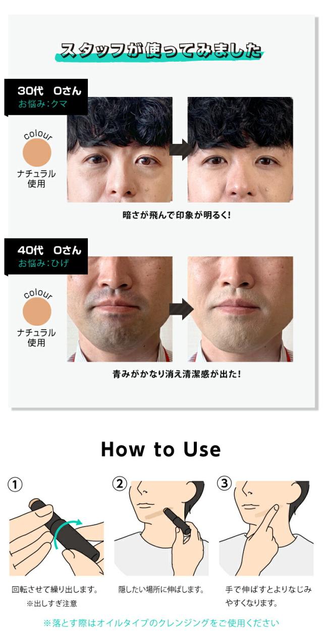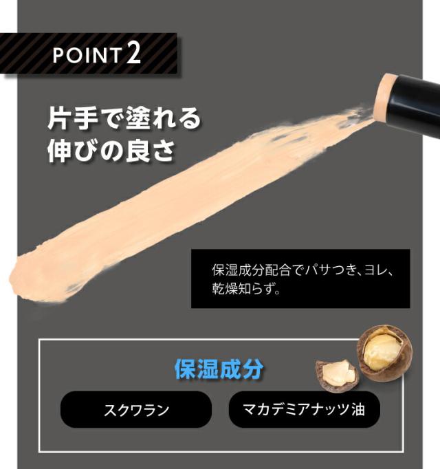 キズやタトゥーまでサッと隠せるから、凹凸やクマも簡単カバー。水や汗にも強いウォータープルーフはもちろん、幅広1.5cmのスティックでたっぷり大容量。