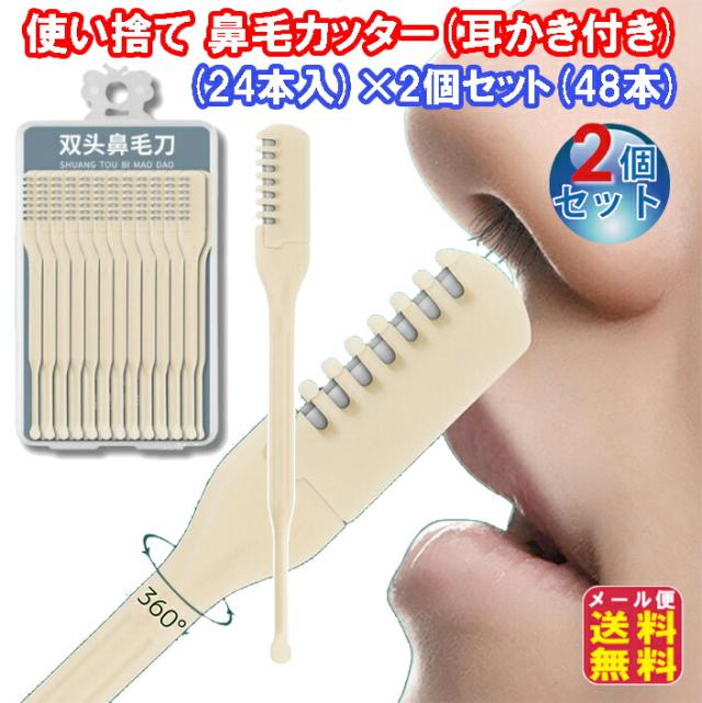 【痛くない 使い捨て 鼻毛カッター(耳かき付き)(24本入)×2個セット(48本)】 【メール便 送料無料】鼻毛カッター 手動 使い捨て 清潔 痛くない 鼻毛ケア 鼻毛切り 鼻毛トリマー 鼻毛処理 鼻 鼻毛トリミング まわすだけ 耳かき 耳毛処理 pk