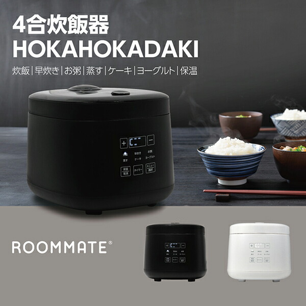 【ROOMMATE 4合炊飯器 HOKAHOKA炊き RM-218TE】【送料無料】 炊飯器 ブラック ホワイト 4合炊き コンパクト 多機能 保温 12時間 早炊き お粥 スープ 煮物 ヨーグルト ケーキ 蒸し料理 タッチパネル 簡単操作 温度センサー 内蓋 洗える sd