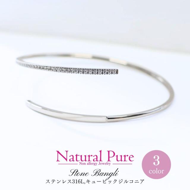 アレルギーを誘発しにくい、敏感肌に優しい最高位の医療用ステンレス316Lに、AAAクラスのキュービックジルコニアをあしらったストーンバングル。
