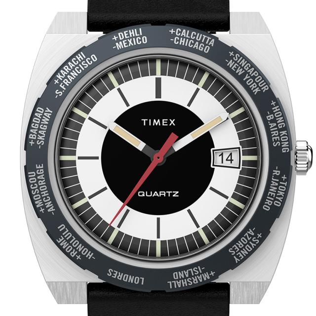 タイメックス ワールドタイム 1972 復刻モデル ブルズアイダイヤル TW2V69500 メンズ 腕時計 クオーツ 電池式 ブラック 革ベルト