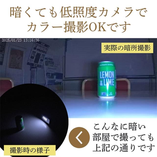 低照度カメラを搭載しており、暗くてもカラー撮影が可能です。