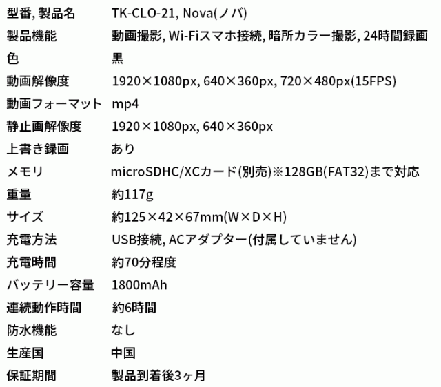 ■ TK-CLO-21(Nova)(ノバ) | フルHD録画対応置時計擬装(偽装)カメラ