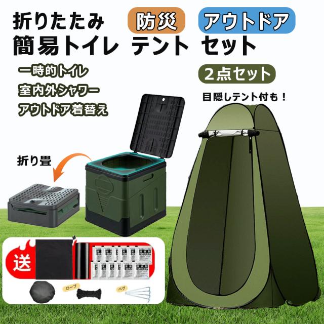 簡易トイレ テント 防災用 折りたたみ セット プライバシーテント 携帯トイレ 非常用 凝固剤 防災|常備 防災用品 アウトドア 介護用 折りたたみ キャンプ 車中泊 着替えテント 汚物袋 収納袋 プライベートテント 簡易便器 非常用トイレ 避難用 地震 蓋付