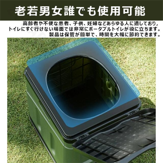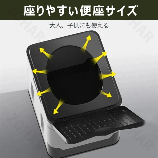 このトイレは折りたたみ式のデザインで、携帯用のハンドルが付いており、持ち運びが非常に便利です。アウトドアでキャンプや旅行、または車内で使用する場合でも、トイレの問題を簡単に解決できます。特に、緊急災害や停電の場合でも、このトイレはトイレの問題を心配することなく、あなたを支援してくれます。